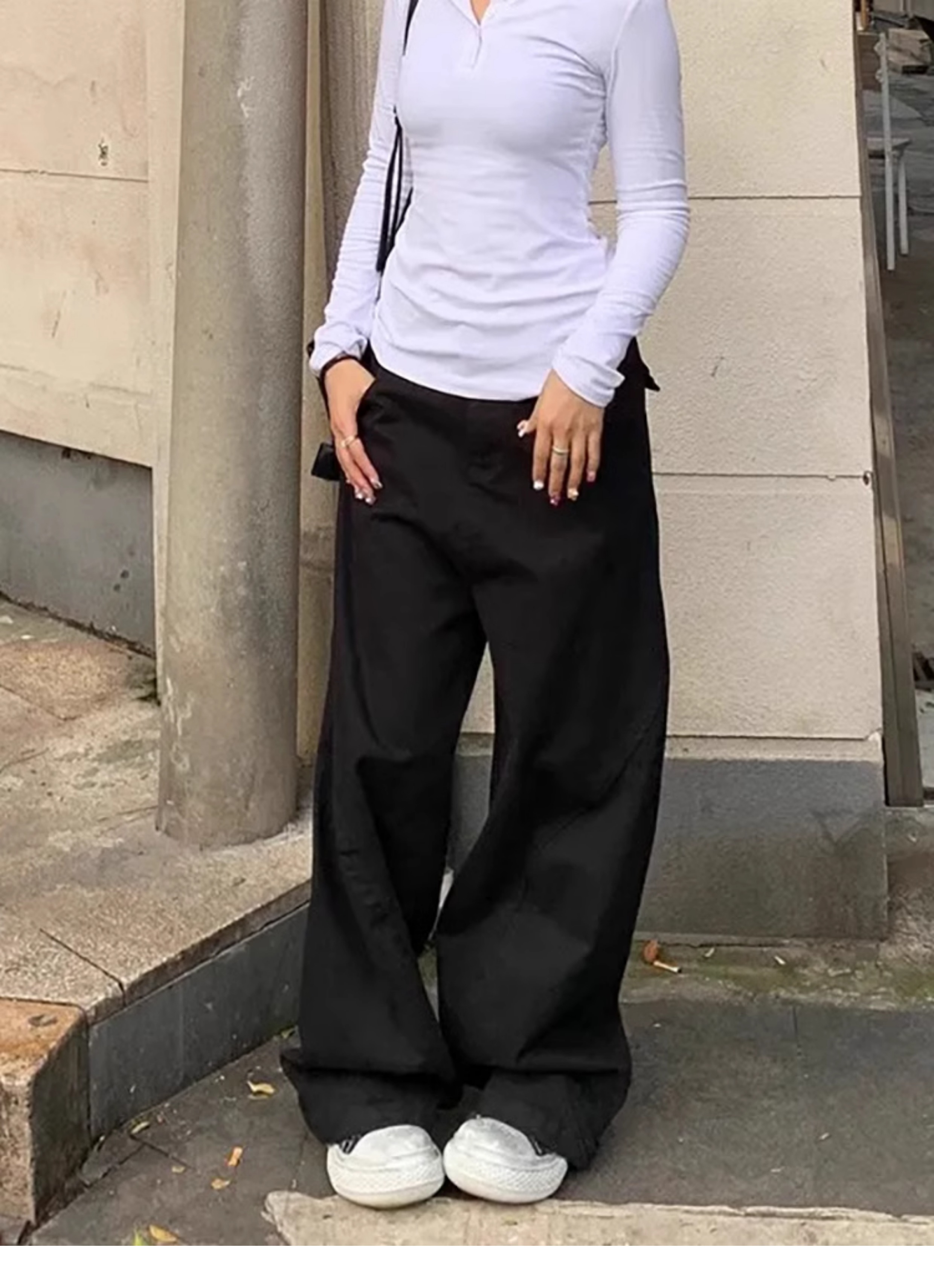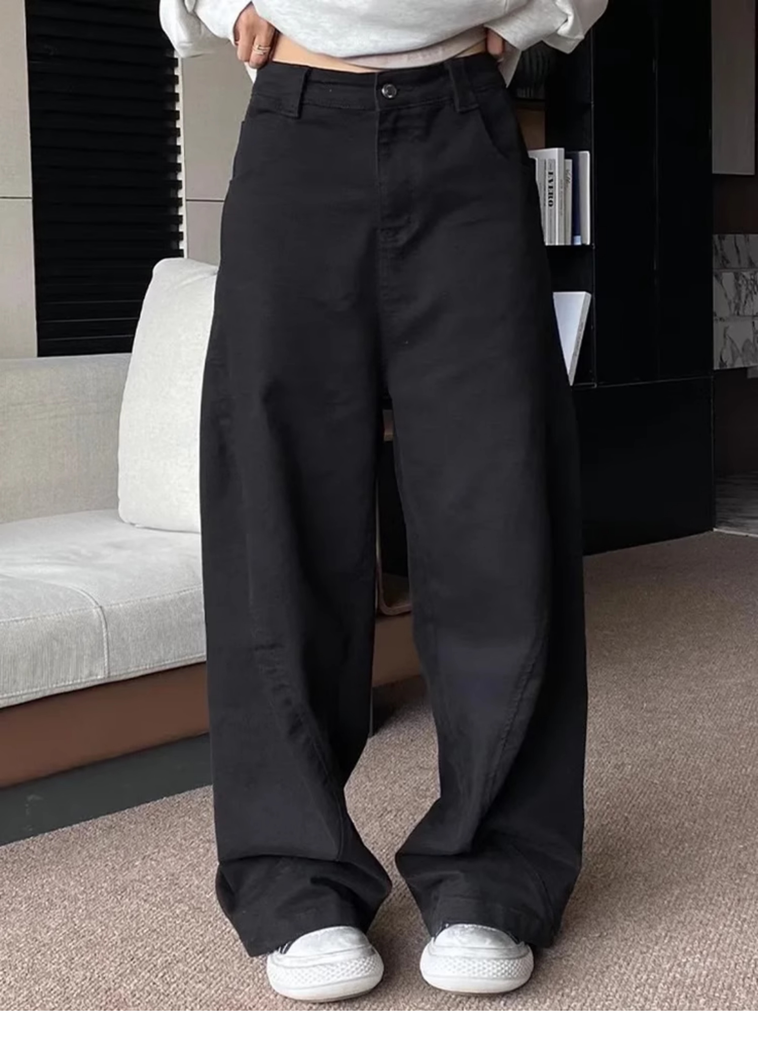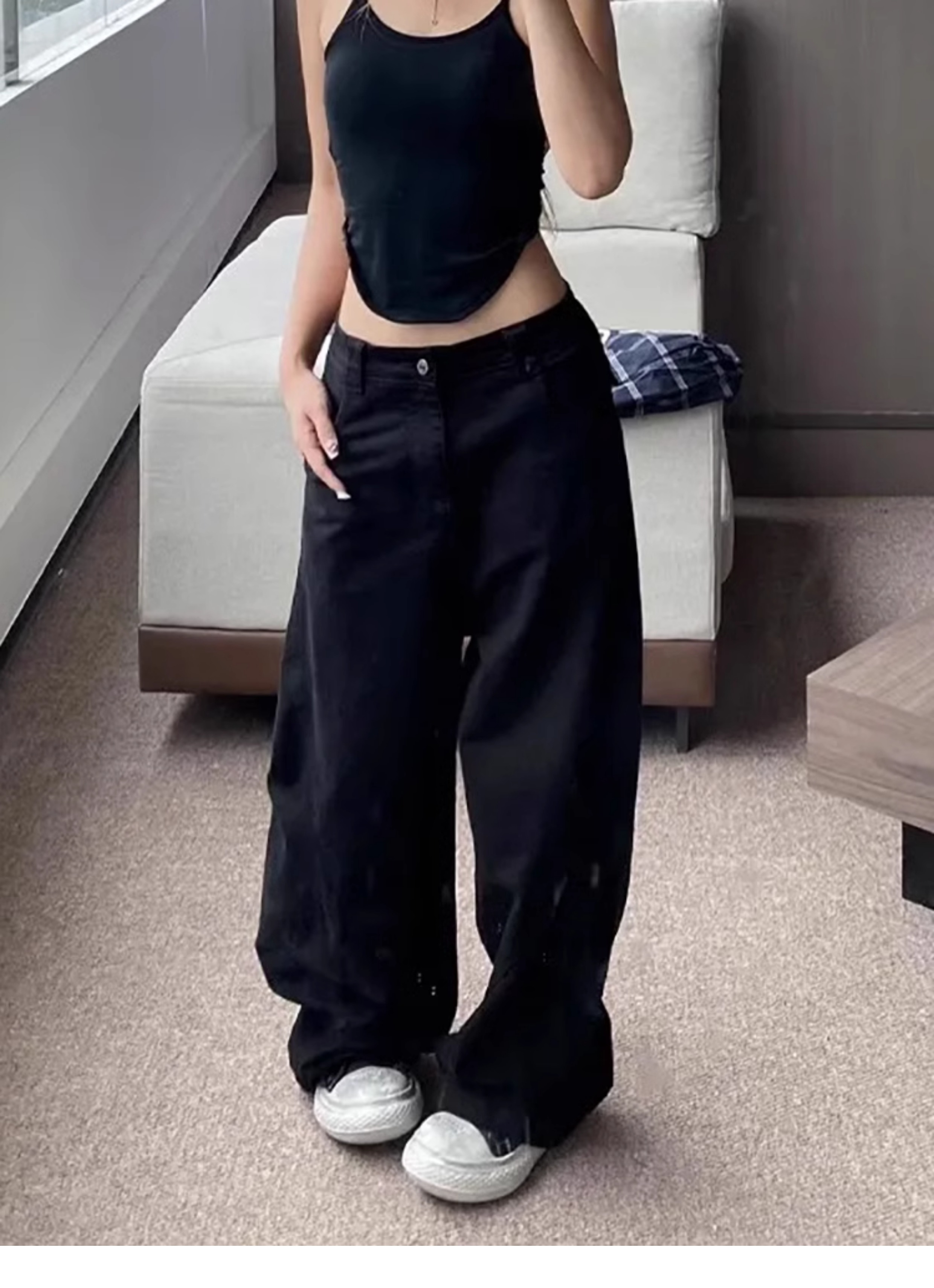 Black Machete Jeans Women's Retro High Waist Straight Mopping Pants